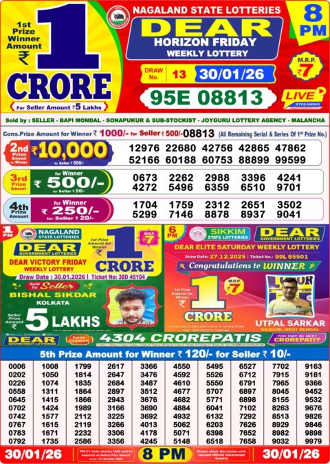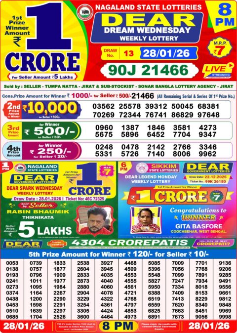 Check 1PM 6PM 8PM Nagaland & Sikkim Lottery Result for Dear Lottery