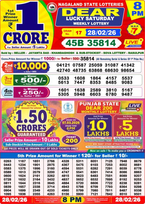 • Nagaland State Lottery Result 28/02/2026