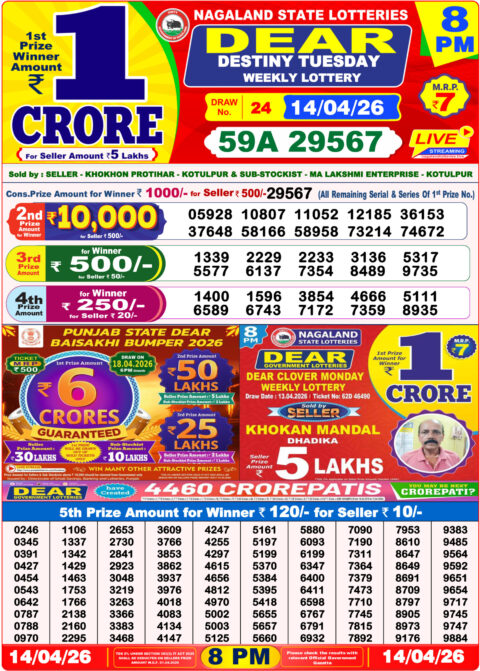 0 Comment on Nagaland State Lottery Result 14/04/2026