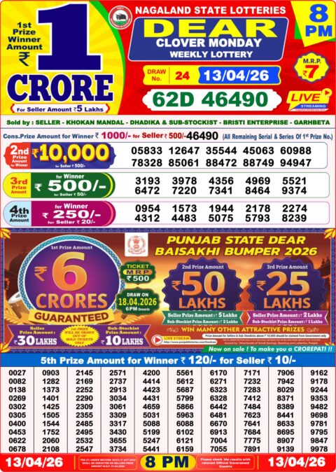 0 Comment on Nagaland State Lottery Result 13/04/2026