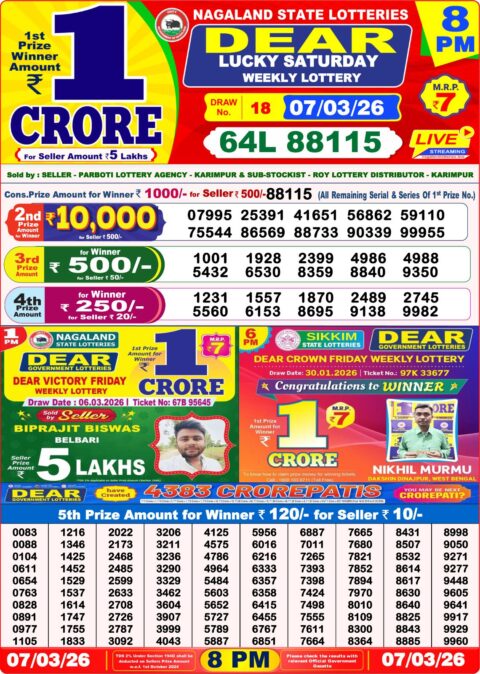 Check 1PM 6PM 8PM Nagaland & Sikkim Lottery Result for Dear Lottery