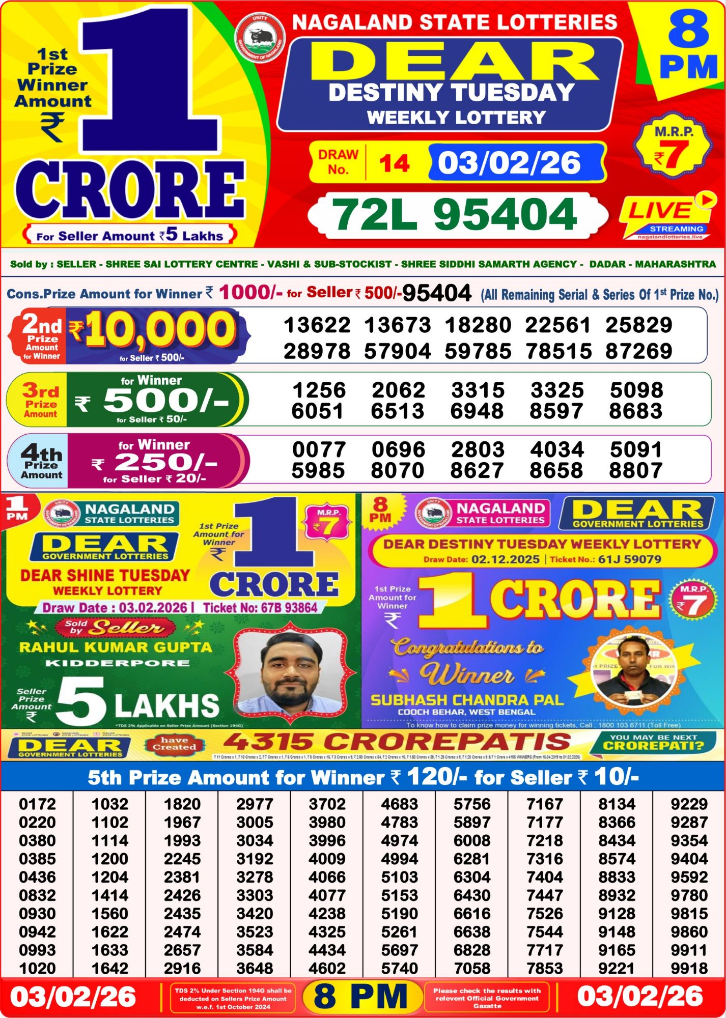 Nagaland State Lottery Result 03/02/2026