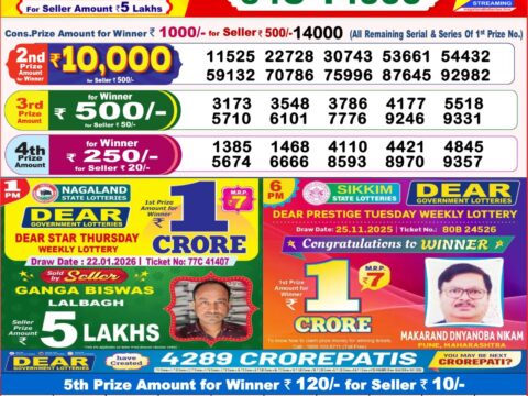 Note: This Draw is Conducted by Sikkim State Lotteries. Stay tuned!