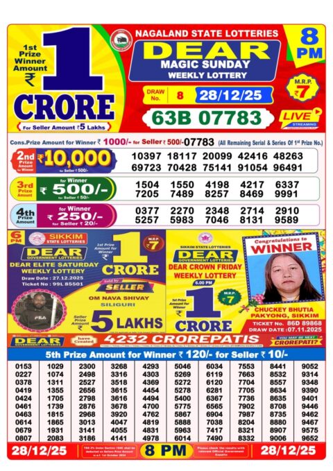 0 Comment on Nagaland Lottery Result 28 December 2025 | 1PM 6PM 8PM
