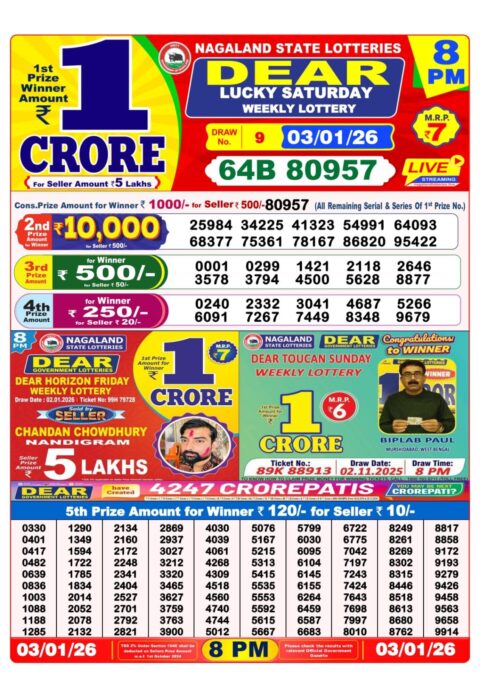 0 Comment on Nagaland Lottery Result 03 January 2026 | 1PM 6PM 8PM